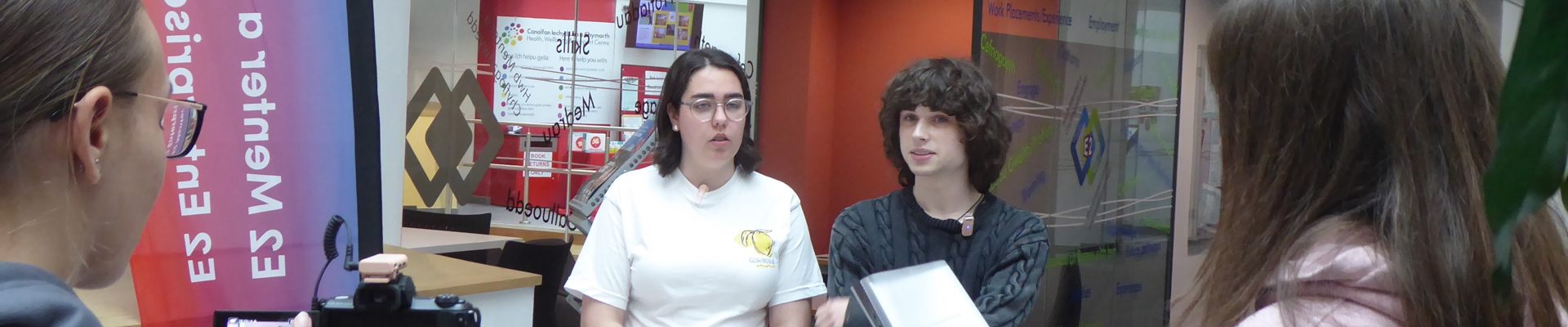 Mae Trydan yn cefnogi mentrau gyrfaoedd sy’n cael eu rhedeg gan ein cymdogion agos, Coleg Merthyr Tudful. Mae Trydan eisiau i ddysgwyr feddwl am swyddi a rolau yn y dyfodol y byddant yn eu cael eu hysgogi ganddynt tra yn yr ysgol neu'r coleg, a fydd yn hanfodol i Gymru elwa'n economaidd ac yn gymdeithasol o ddyfodol mwy cynaliadwy. Bydd angen peirianwyr, technegwyr, gweithwyr adeiladu, ecolegwyr, rheolwyr prosiectau, cyfreithwyr, ac, wrth gwrs, cyfathrebwyr gwych ar y sector ynni adnewyddadwy. Aeth Catrin at Lianna James, Cydlynydd Cyflogadwyedd a Menter gyda syniad. Ymatebodd hithau drwy gyflwyno’r Darlithydd, Anna Williams, ac Alisha Jones a Milly Stoneman (y ddwy yn 17 oed).